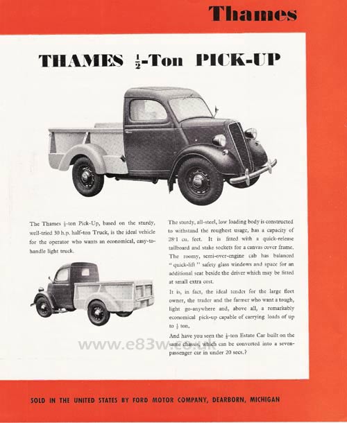 Thames 1/2 ton Pickup (steel version), US version showing bumper overriders etc, printed 1950.