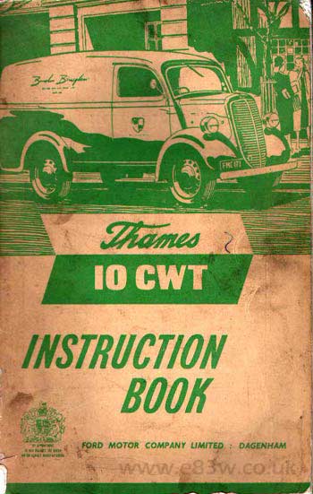 Thames 10cwt handbook, publ 1955 and typical of the style sold with 50s Thames vans/pickups.