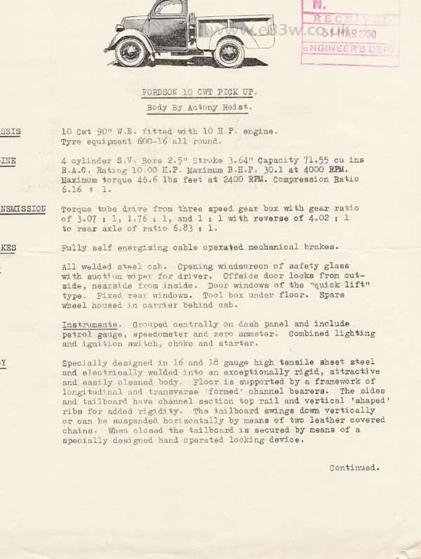 this particular bodystyle was built by Antony Hoists Ltd. The single sheet flyer shows a drawing at the head of the page, followed by technical spec. Interestingly (well I thought so)