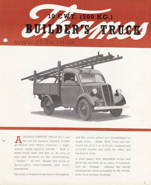 Thames Vans, inc 5 & 10cwt Thames vans/pickups. Published 1952.